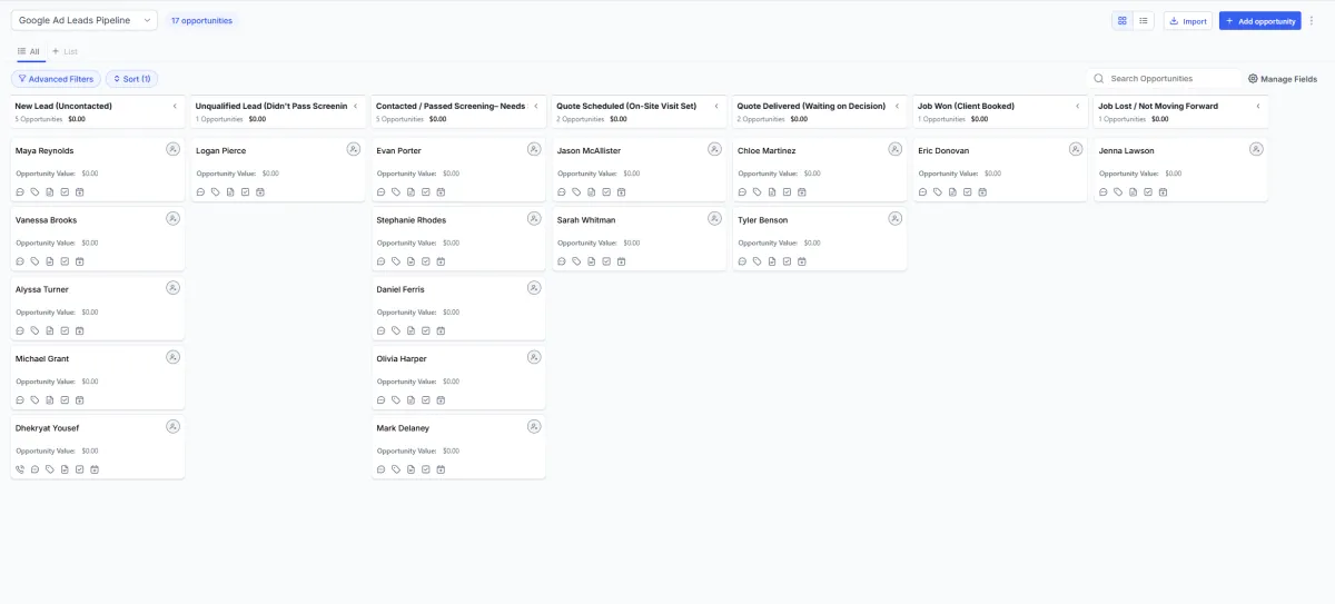 Most agencies set up your campaign, send a report, and call it a month. We work with a maximum of 20 clients at a time, because that's what it takes to actually do this right. What you get isn't just ads. It's a full system: targeted campaigns that pre-qualify leads before they ever call you, high-converting landing pages, and a CRM that follows up the moment someone shows interest. End-to-end. Managed by us. Built to grow your business.